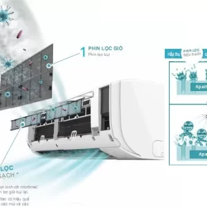 Không chỉ làm lạnh nhanh, vận hành êm, thiết kế đẹp máy điều hòa Daikin FTF25XAV1V trang bị phin lọc Apatit Titan (tuổi thọ lên đến 03 năm nếu thực hiện vệ sinh sáu tháng một lần) có thể vô hiệu hóa vi khuẩn và virus. Mang lại không khí trong lành, sạch sẽ bảo vệ sức khỏe những người thân yêu của Bạn.